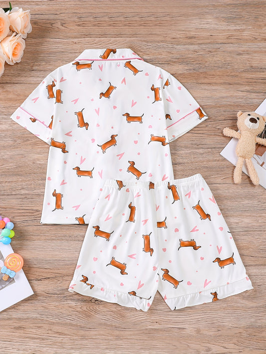 Barnpyjamas 2-delad med tecknad tax & hjärtan – kortärmad topp & shorts