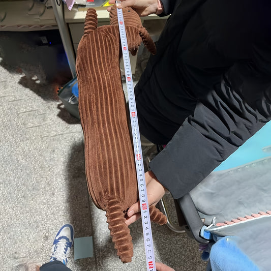 Lång taxformad plyschkudde med ribbad textur – 70 cm, dekorativ & charmig