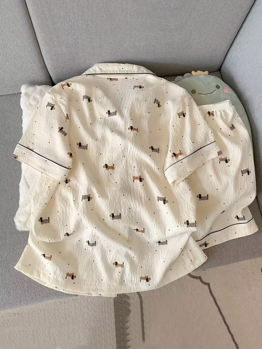Tvådelad pyjamas i texturerat tyg med knappdetaljer och slagkrage